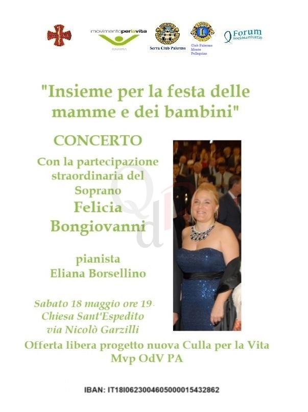Domani 18 maggio alle ore 19 nella Chiesa di Sant’Espedito in via Niccolò Garzilli, si terrà il concerto di beneficenza “Insieme nella festa della Mamma e nella prima festa mondiale dei Bambini”, per la raccolta fondi del progetto “Una nuova culla per la vita”. L’organizzazione è a cura del Movimento per la Vita . Animera’ il concerto la partecipazione straordinaria del soprano Felicia Bongiovanni, Callas Tribute Prize di New York 2024, che qualche giorno fa ha inaugurato il primo concerto d’apertura del Giubileo Rosaliano presso la Facoltà Teologica Pontificia, cantando la preghiera in musica inedita: “Rosalia T’invochiamo per esser santi”, accolta con grande entusiasmo dal folto pubblico presente e di cui è stata prima interprete e autrice del testo. I brani d’opera e della tradizione classica del concerto di domani saranno tutti incentrati sui temi dell’amore, della vita, dell’ amore materno, della grazia divina.