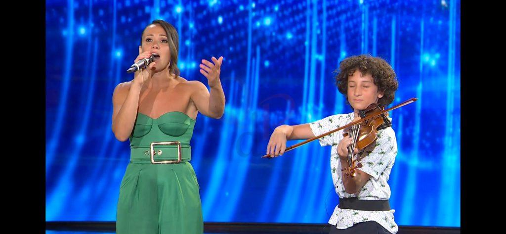 Mamma Monica, emozionatissima per il successo di Samuele, è una cantante e Rudy Zerbi ne approfitta per chiederle un duetto improvvisato di 30 secondi col figlio. Canta Caruso, il brano dell’indimenticabile Lucio Dalla, e ad accompagnarla c’è il 12enne col suo violino. Un’esibizione che porta ancora applausi e consensi. Uscendo, il padre di Samuele risponde a Gerry Scotti che gli chiedeva se anche lui suonasse qualcosa. Lo fa mimando perché non ha più il microfono. Ne esce un’imitazione perfetta di Adriano Celentano. Un altro talento familiare che certamente sarà riproposto in finale.