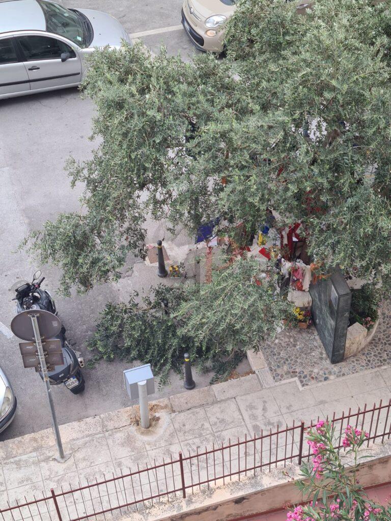 “Chi dovrebbe denunciare l’accaduto continua a non farlo e anche in questo si sente l’assenza di Rita Borsellino – prosegue Emilio Corrao -. Ancor prima di partire per Venezia, dall’aereo, ho richiesto l’intervento del presidente dell’ottava circoscrizione Marcello Longo che è immediatamente intervenuto cercando di creare un ponte tra le competenze che ruotano attorno all’albero della pace. Giunto a Venezia, al festival del cinema dove è stato presentato il docufilm “Scusa Italia” prodotto dalla Fai Cisl Nazionale che ha origine proprio dalla margotta dell’albero della pace di via d’Amelio, apprendo dai tecnici inviati su mia richiesta che il ramo che si è spezzato presenta una torsione anomala. Un ramo così importante – prosegue – non si rompe con il vento. Cosa fare nell’immediato? Provare a puntellarlo da terra ricongiungendo la parte spezzata al tronco come si fa quando si ingessa un arto umano. I tecnici offrivano la loro disponibilità gratuita ma per l’intervento servono le autorizzazioni. Anche in questo caso – ribadisce Corrao – sento la mancanza di Rita Borsellino. Si potrebbero generare delle talee, propongo ai tecnici, per donarle là dove c’è bisogno di un segnale di solidarietà e di pace, magari fino a Kiev. L’idea piace, stuzzica e solletica. Ma serve sempre l’autorizzazione. Quindi l’albero resta mutilato e non arriva nessuna denuncia. È solo grazie ad un solo articolo di giornale del Quotidiano di Palermo – sottolinea il genero di Rita Borsellino – che i carabinieri hanno appreso la notizia e hanno cominciato ad interessarsi. Ma sono fermi perché aspettano la denuncia e senza quella non possono richiedere il video delle telecamere che toglierebbe ogni dubbio.
