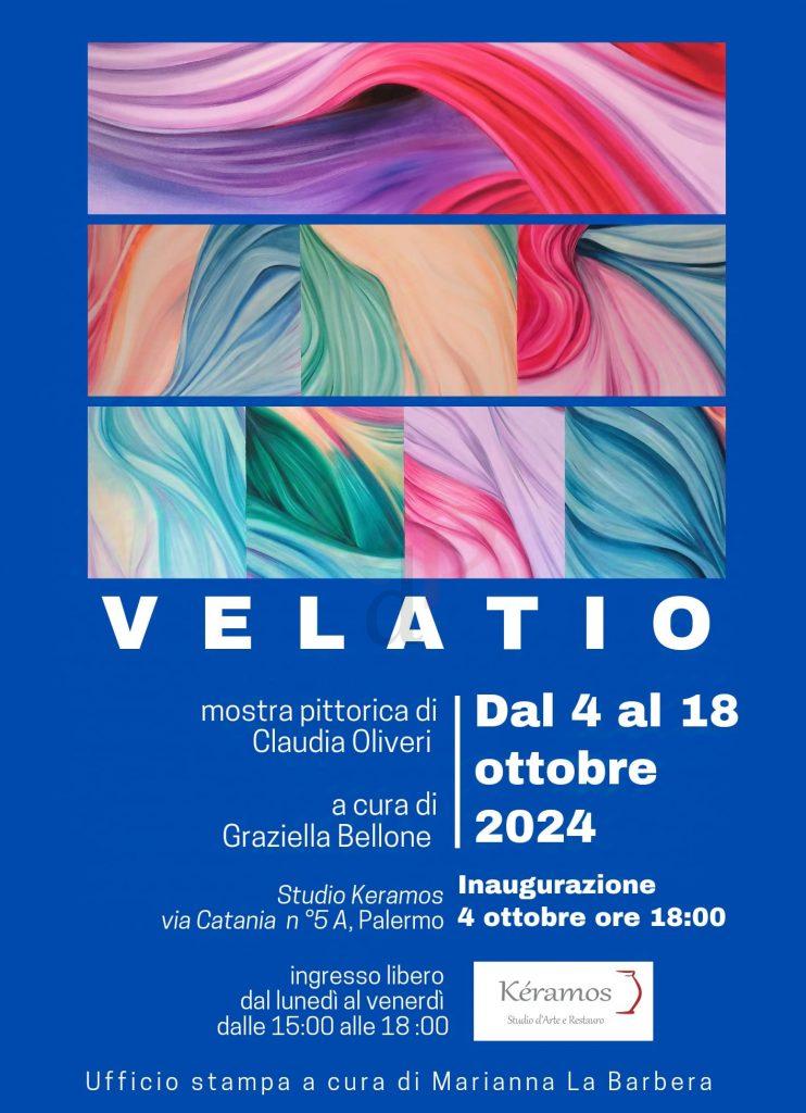 “Velatio” è il titolo della nuova personale dell’artista palermitana Claudia Oliveri, curata e organizzata dalla professoressa Graziella Bellone, in programma a Palermo dal 4 al 18 ottobre, negli spazi di Studio Kéramos Arte e Restauro in via Catania 5/a.