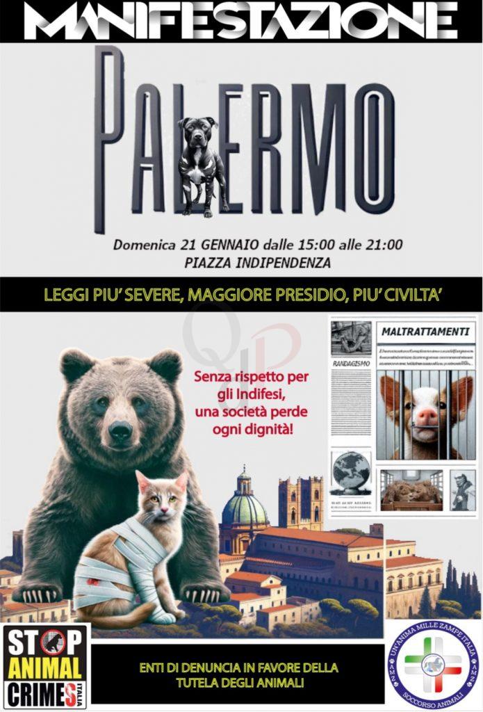 Le associazioni di tutela animale “Stop Animal Crimes Italia APS” e “Un’anima Mille Zampe Italia” hanno indetto per domenica 21 gennaio 2024 un’altra manifestazione a Palermo per sensibilizzare la comunità al rispetto nei confronti degli animali. L’evento avrà inizio alle 15 e finirà alle 21 presso piazza Indipendenza. La manifestazione è nata in risposta al caso Aron ma anche ai tragici episodi di maltrattamento animale di cui siamo stati spettatori inermi nel corso del 2023. Le associazioni organizzatrici, nel comunicato, inviano un elenco dei casi più eclatanti:
