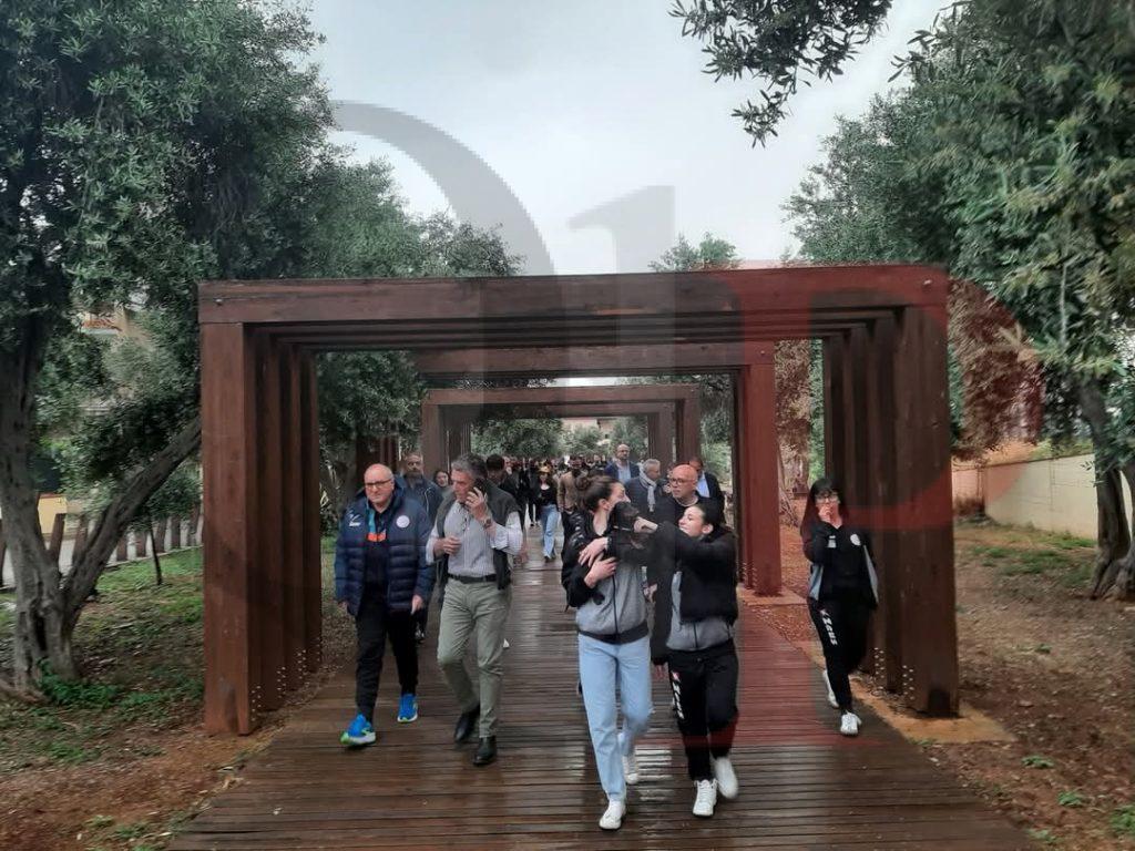 La visita si è conclusa con il cammino silenzioso verso la Casetta No Mafia, tappa finale di un percorso che ha unito sport, storia e impegno civile.