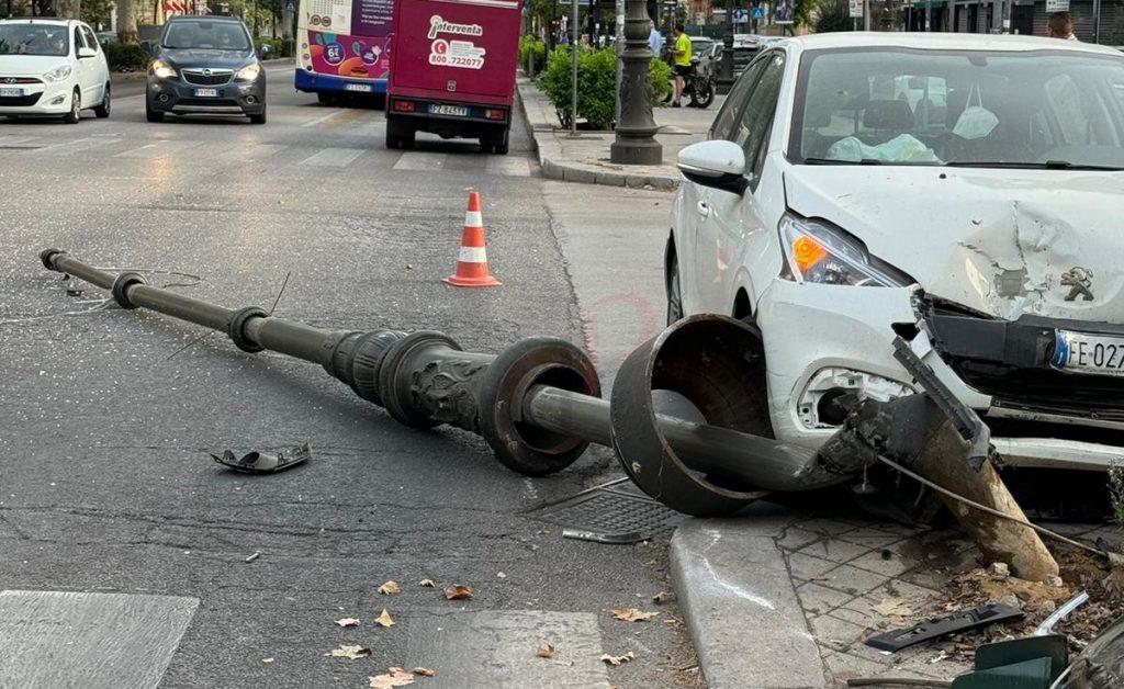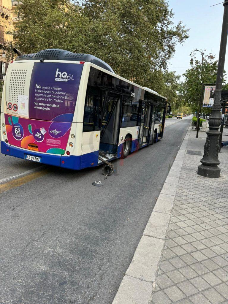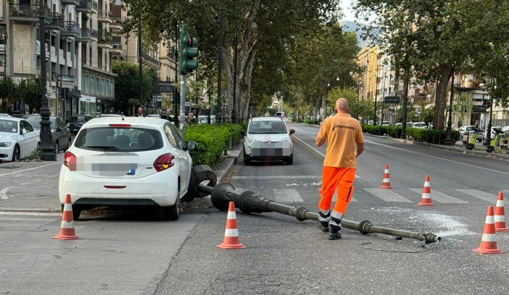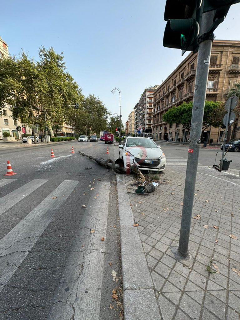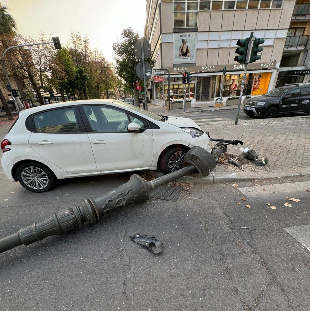 Rocambolesco incidente stradale a Palermo che ha coinvolto un’auto e un autobus Amat della linea N2. Intorno alle 5 del mattino, una Peugeot 208 fuori controllo, guidata da un uomo di circa 70 anni, è finita sul marciapiede di via Libertà, all’incrocio con via Archimede, abbattendo un pesante palo dell’illuminazione pubblica.