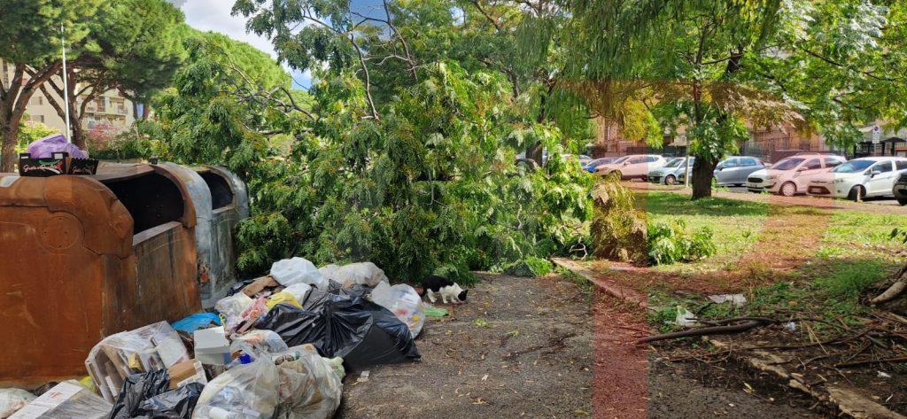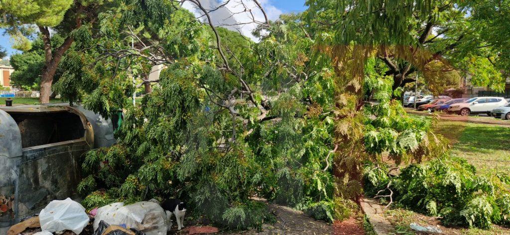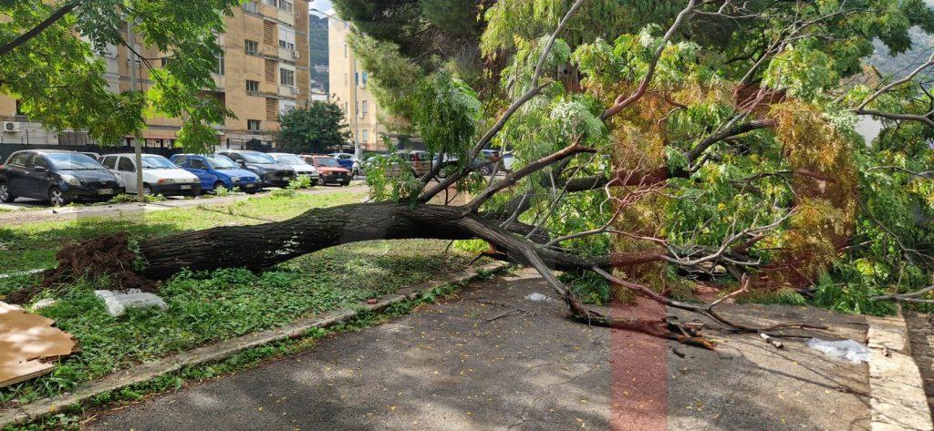 Un altro albero è caduto a Palermo. È avvenuto in via Tindari, nel quartiere di Borgo Nuovo, all’altezza dei civici compresi tra il 16 e il 22. Il grosso tronco, probabilmente a causa del maltempo delle scorse ore, si è sradicato dal terreno ed è finito sul marciapiede, sui cassonetti dei rifiuti.