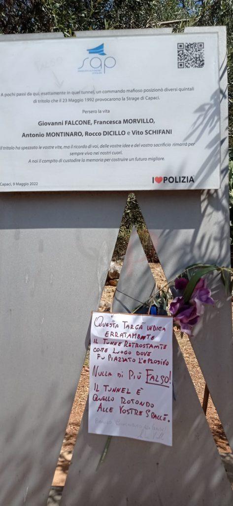 Un fotografo antimafia che imbratta con un pennarello una targa commemorativa all’interno del Giardino della memoria di Capaci: un gesto che potrebbe sbalordire e far gridare allo scandalo. Ma ciò vale solo per coloro che non conoscono Antonio Vassallo, tra i primi ad accorrere sul luogo della strage il 23 maggio 1992. Lui quei luoghi ce li ha dentro e ciò che ha visto in quel maledetto pomeriggio è una cicatrice che non va più via. Ed è per questo che il suo gesto non deve stupire. Dal 2022, da quando fu collocata nel giardino della memoria di Capaci dal SAP, sindacato di polizia, Antonio fa notare che la targa commemorativa che indica il tunnel in cui è stato piazzato il tritolo per uccidere Falcone, sua moglie e la scorta, è stata posta in un punto sbagliato. Il tunnel non è quello indicato dal cartello. Ma nessuno lo ascolta.