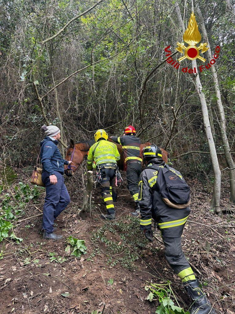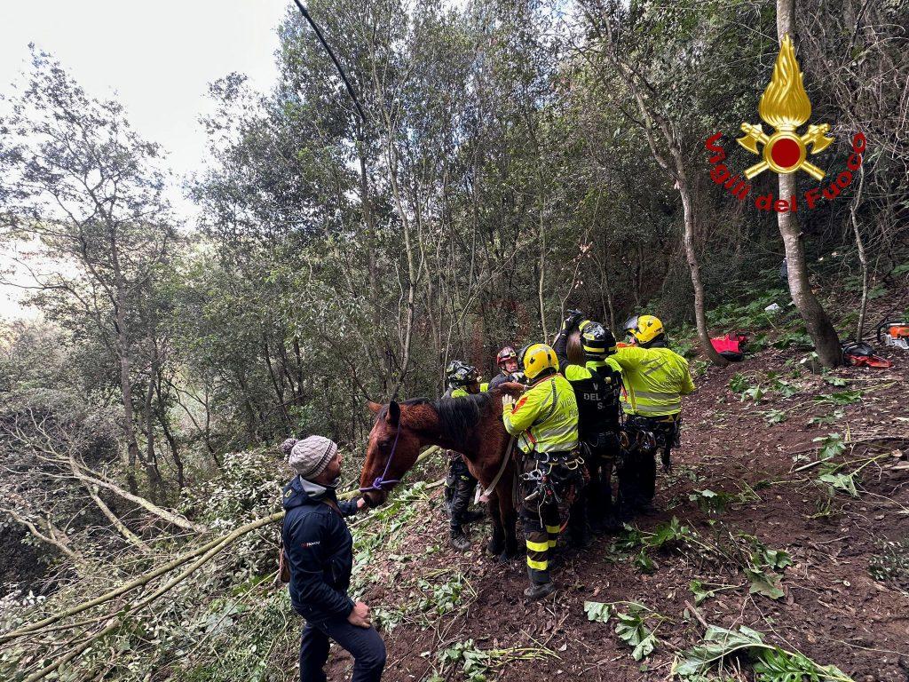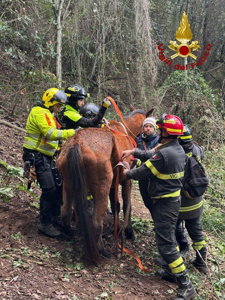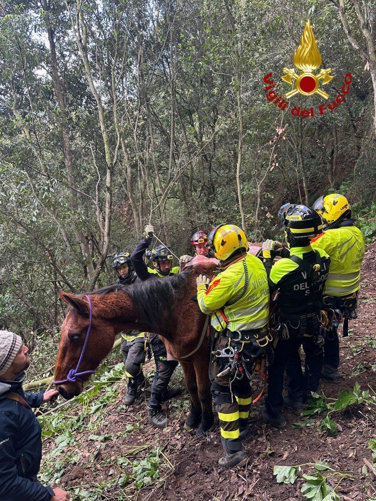 Sul posto era presente anche un veterinario che ha provveduto a sedare il cavallo, consentendo ai soccorritori di operare in sicurezza. L’animale è stato quindi imbracato e elitrasportato in una zona sicura. Le operazioni di soccorso, complesse e coordinate, si sono concluse intorno alle ore 15:00.