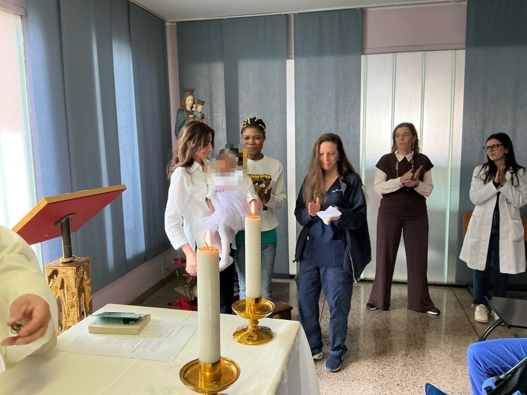 “Non è consueto – ha detto la dott.ssa Amata -vivere momenti come quello odierno, così carichi di significato e siamo davvero grati a questa mamma per aver scelto proprio noi per celebrare il battesimo di questa creatura. È un segnale di fiducia e attaccamento che ci restituisce il senso del nostro operato: la cura della sofferenza non fisica, ma anche dello spirito e che più richiede attenzione e partecipazione”.