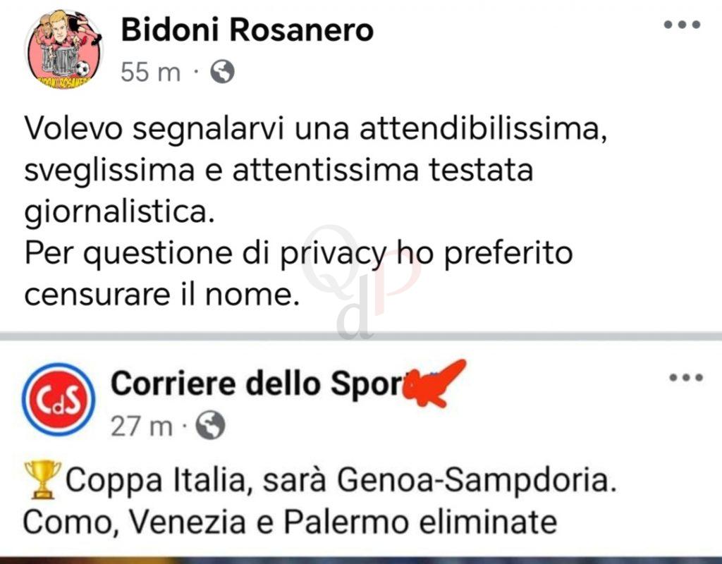 Ma il giornale sportivo nazionale più importante di Italia, ovvero il Corriere dello Sport, titola così: “Coppa Italia, sarà Genoa – Sampdoria: Como, Venezia e Palermo eliminate”. Un errore grossolano, solo da parte di chi ha titolato, che ha scatenato i commenti e l’ironia dei palermitani: