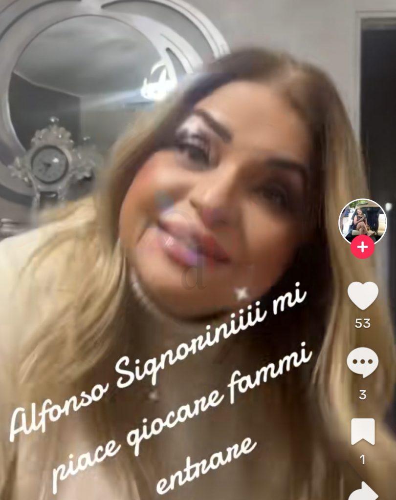 È talmente determinata a convincere Alfonso Signorini nel suo intento che ha composto una canzone che nel suo profilo tik tok è diventata un vero e proprio tormentone:
