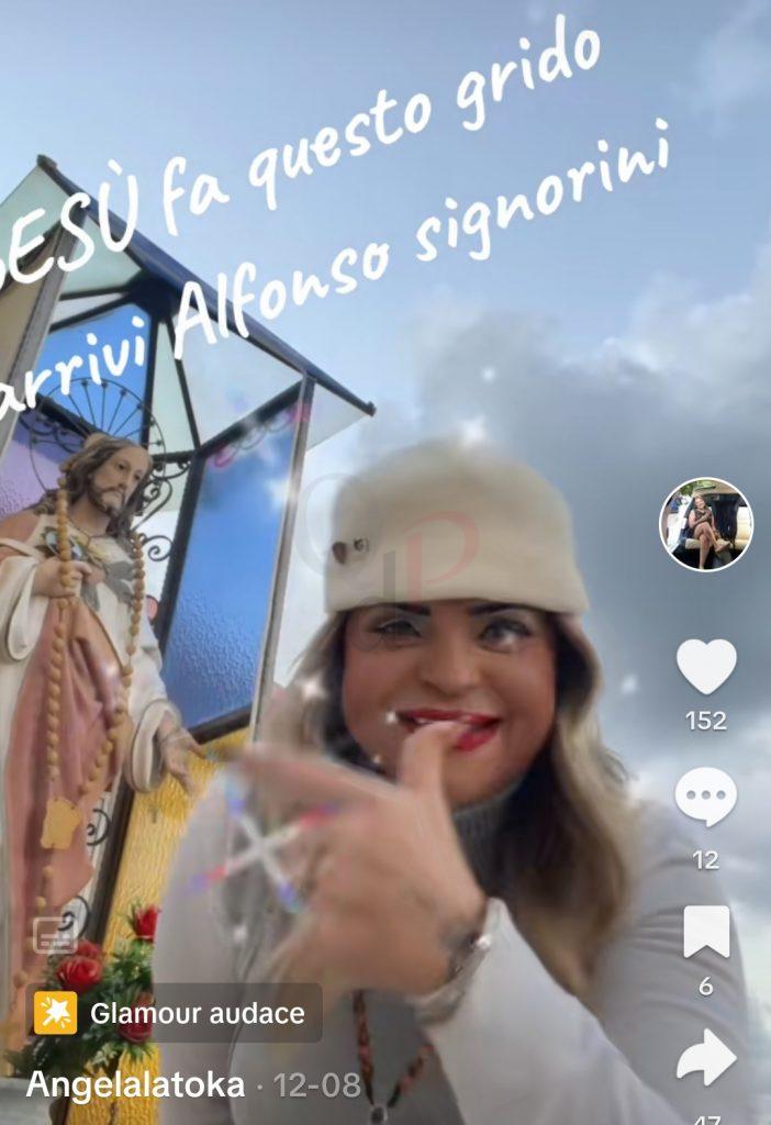 In uno dei tanti tik tok, Angela ha chiesto aiuto perfino al Signore pur di entrare nella casa più famosa d’Italia, registrando la sua canzone davanti ad una statua di Gesù.
