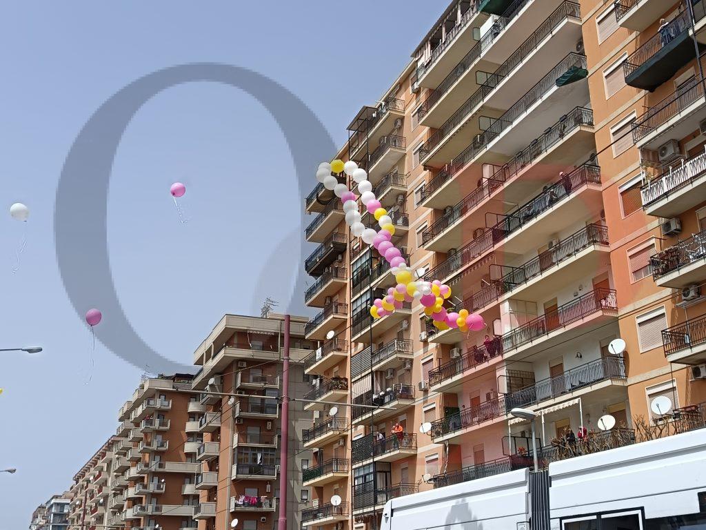 Un volo spezzato dai fili elettrici del tram. I palloncini, per un caso che sembra quasi un segno ultraterreno, si sono fermati all’altezza del balcone di Vincenza, al primo piano del civico 12.