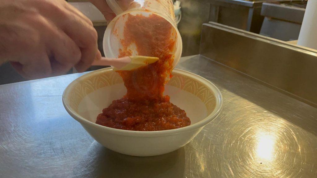 In altre ricette, in giro nel web, troverete altri ingredienti, tipo l’aglio. Io lo sconsiglio. Se siete d’accordo continuate tagliando i peperoni a listarelle. Mettete sul fuoco e unite zucchero e sale, mescolando energicamente. La fiamma deve essere media. Man mano che i peperoni vanno cuocendosi butteranno acqua. Anche per questa marmellata è importante che si asciughi completamente. A questo punto frulleremo il composto. Una volta fredda potremo passare la nostra deliziosa marmellatina sul formaggio che preferiamo o, in alternativa, volendo, potremo gustarla su una bruschetta. Ma non è la stessa cosa. Buone feste.