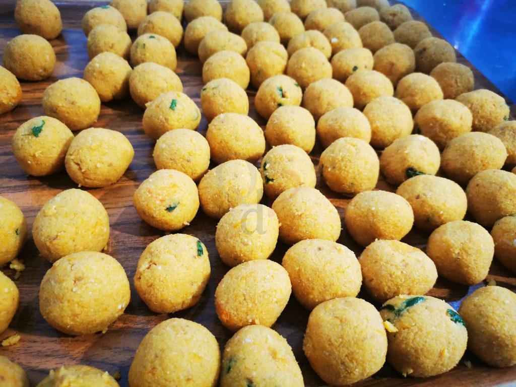 In una casseruola versate la crema di zucca e unite uova (un uovo ogni 200 grammi circa di zucca) abbondanti foglie di menta, pecorino, pepe, mollica. Quest’ultima serve a rendere il composto più denso ma va aggiunta un po’ alla volta e a sensazione, senza esagerare, altrimenti le crocchè una volta fritte verranno troppo “secche”. E invece il risultato deve essere croccante fuori e morbido dentro. Il trucco, per capire se la mollica aggiunta è sufficiente, è quello di schiacciare sul palmo di una mano una quantità di composto ben amalgamato ed effettuare con l’altro palmo un movimento rotatorio, creando piano piano una “polpetta”. Se riusciremo a farla senza che la zucca resti appiccicata alla mano avremo raggiunto la densità ottimale. A questo punto non ci resta che fare tante crocchettine o polpettine che poi andranno fritte in abbondante olio di semi bollente.