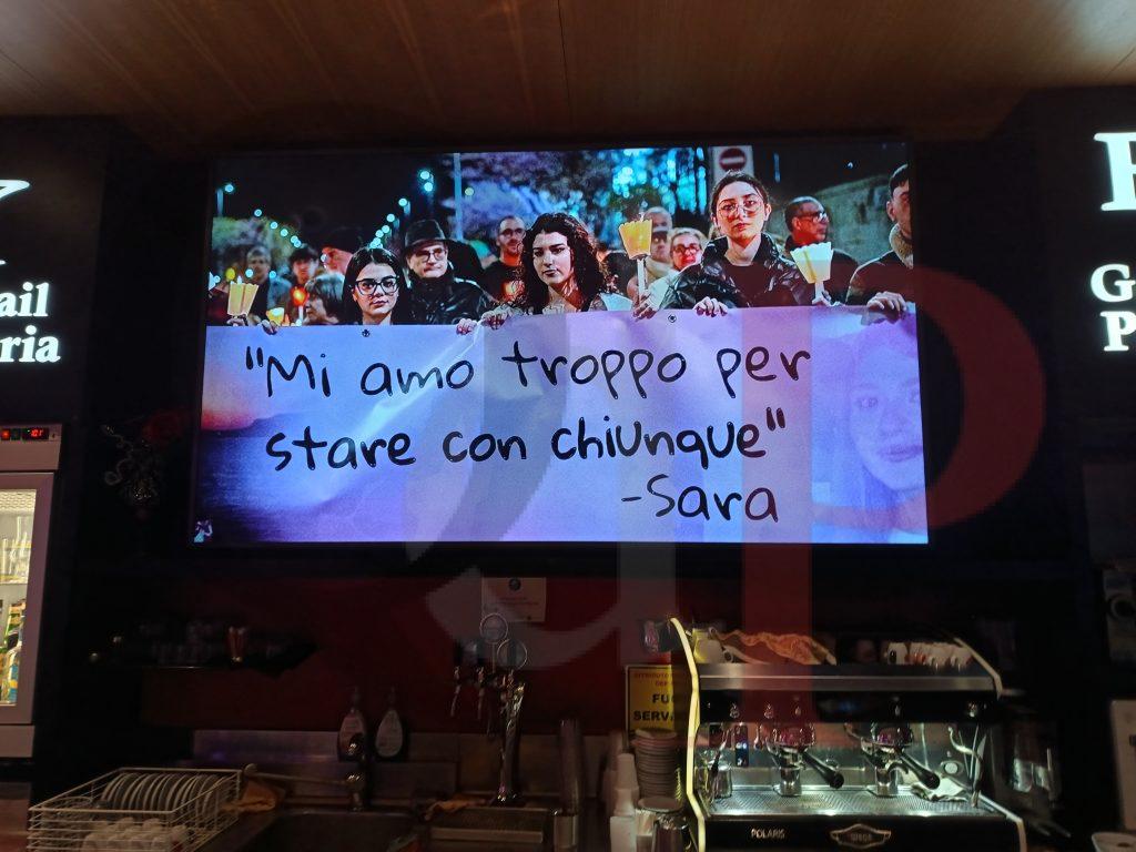 Già all’ingresso di Misilmeri si leggono le parole di Sara che in questi giorni stanno facendo il giro del mondo: “Mi amo troppo per stare con chiunque”. Nei bar, per le strade, nei balconi è un grido unanime: “Sara vive”.