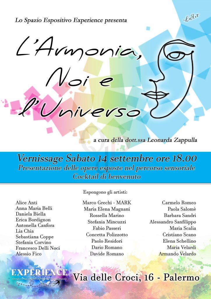 Dopo la parentesi estiva, lo spazio culturale “Experience” riapre i battenti con la collettiva dal titolo “L’Armonia, Noi e l’Universo”, in programma dal 14 al 28 settembre.