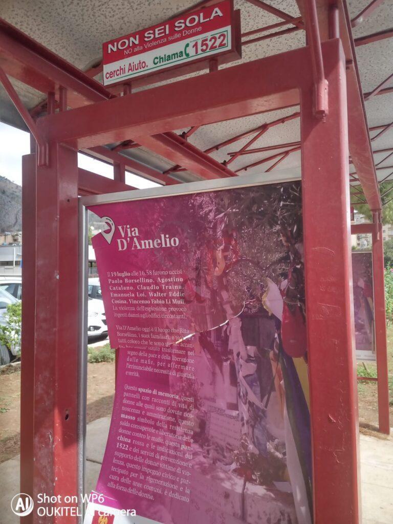 Questa zona, a pochi passi da via D’Amelio, dove nel 1992 la mafia assassinò il giudice Paolo Borsellino e la sua scorta, è un simbolo. Cartelloni commemorativi, in quella che era una fermata degli autobus dismessa, ricordano donne straordinarie che hanno testimoniato coraggio, memoria e dedizione nel contrastare il fenomeno mafioso. Tra queste Rita Borsellino, Rita Atria, Agnese Piraino Leto, Emanuela Loi e Maria Pia Lepanto.
