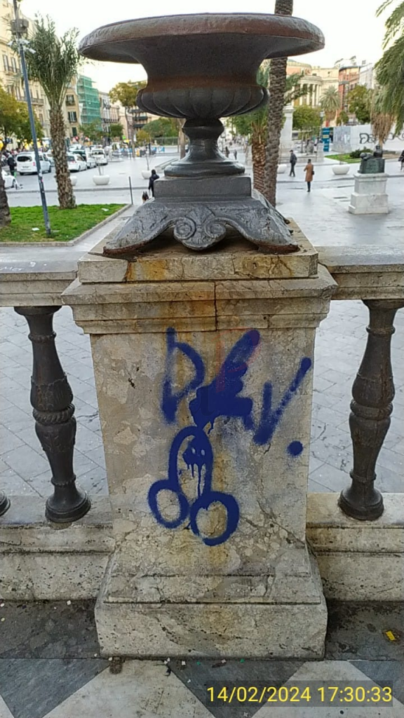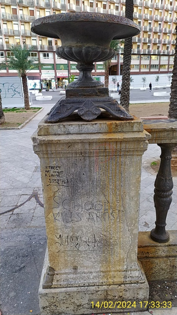 Un monumento del genere merita cura e attenzione costanti. Einvece ormai da tempo é stato preso di mira da gruppi di ragazzi e ragazze che vi bivaccano, fra liti, gare di skateboard e “gare” di scarabocchi, in un crescendo di devastazione e di poca attenzione sul nostro patrimonio artistico.