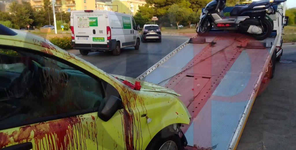 Una Fiat Panda fuori controllo, un violento impatto con uno scooter, poi lo schianto contro un furgone-mercato posizionato nel mezzo di una rotatoria e l’investimento di un pedone, schiacciato tra l’auto e il bancone della frutta. È la drammatica sequenza dell’incidente avvenuto nella giornata di ieri in via Lanza di Scalea, all’altezza dell’intersezione con via Fabio Besta, dove quattro persone sono rimaste ferite.