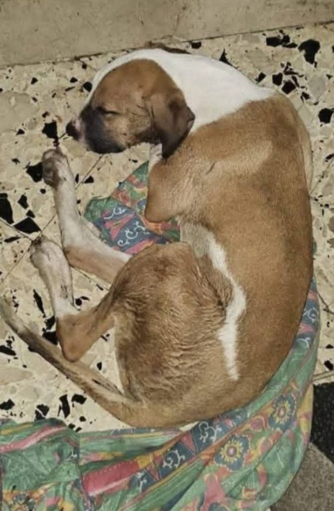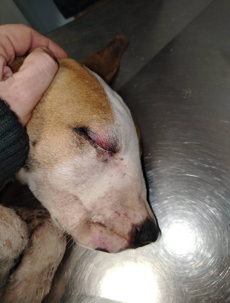 Caramello era ancora lì, nella stessa posizione indicata nella segnalazione. Quasi del tutto assente, con il volto gonfio intorno alla testa e agli occhi, sangue e feci incollati sul corpo e sulle zampe. È scattata immediatamente la corsa verso una clinica veterinaria, dove il cane è giunto in gravissime condizioni.