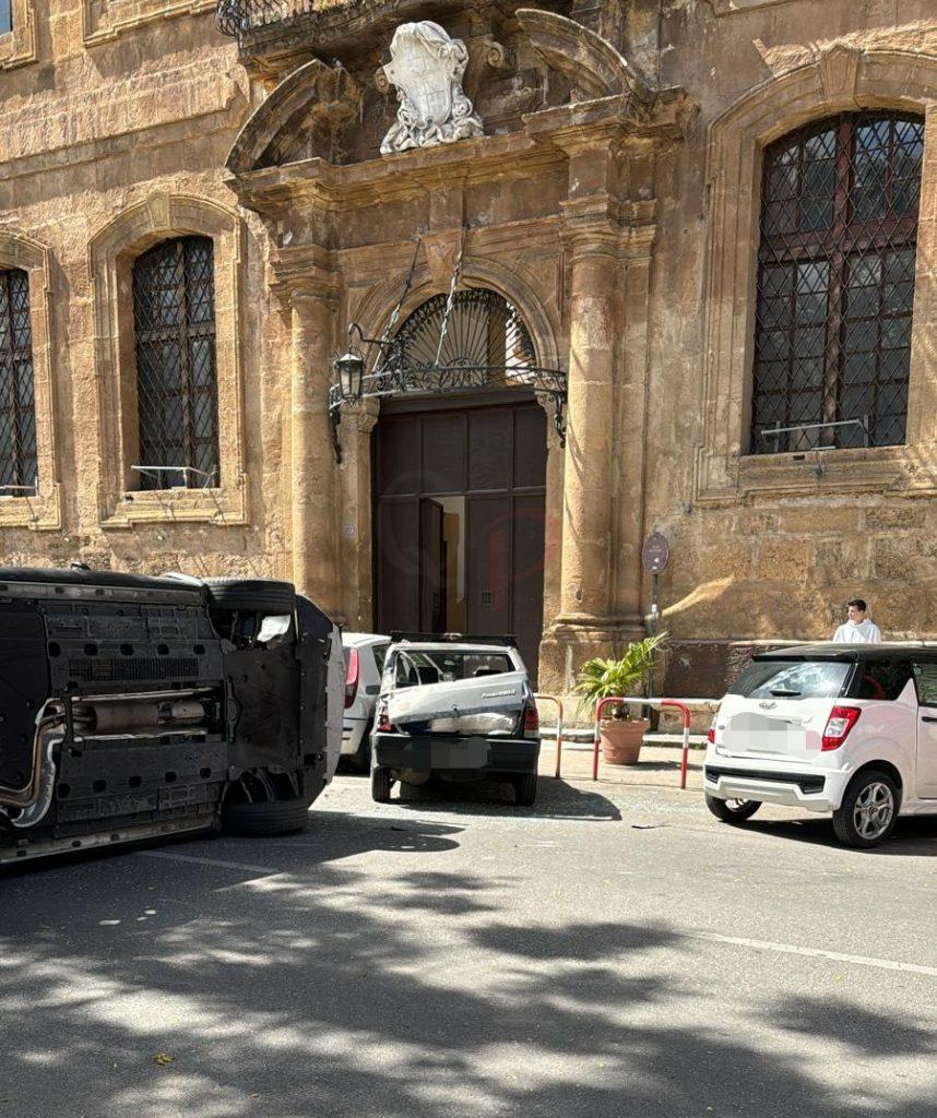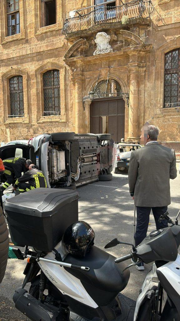 Carambola e cappottamento a Palermo. Un incidente piuttosto grave è avvenuto ad ora di pranzo in corso Calatafimi, all’altezza dell’albergo delle povere. Sono cinque i mezzi coinvolti, quattro auto e uno scooter. A causare il sinistro una Renault Captur fuori controllo che ha finito la sua corsa cappottata dopo aver danneggiato tre auto posteggiate, una Fiat Panda, una Fiat Punto, una minicar Lieger, e uno scooter Yamaha 400.