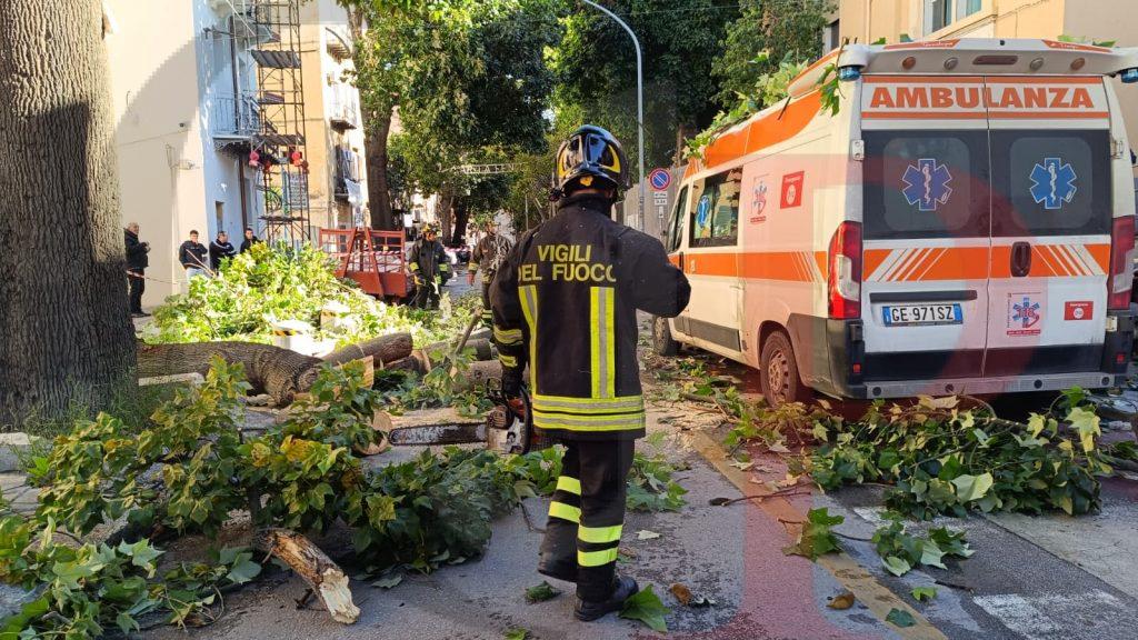 Paura questa mattina davanti al pronto soccorso del Policlinico di Palermo, in via Liborio Giuffrè, dove un albero è improvvisamente crollato finendo su un’ambulanza in sosta e danneggiando anche uno scooter parcheggiato poco distante. L’episodio si è verificato in pochi istanti, sotto gli occhi di passanti, pazienti e operatori sanitari, che hanno assistito increduli alla scena.