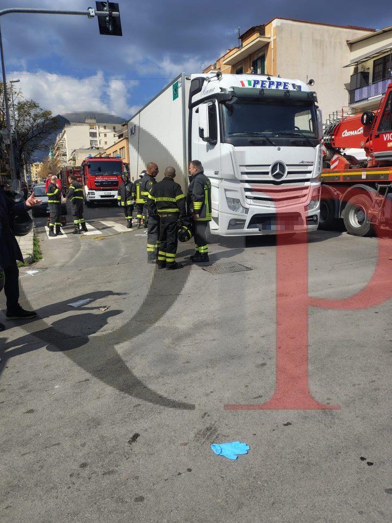 Della donna non sono ancora state rese note le generalità. Un impatto terribile. Un arto inferiore della vittima è stato infatti pestato da una ruota del mezzo. Estratta dai vigili del fuoco da sotto il camion, è stata trasportata d’urgenza al pronto soccorso del Civico.
