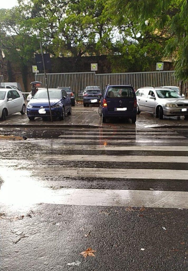 L’area è sfruttata in pieno da parcheggiatori abusivi, che obbligano i pedoni a fare lo slalom tra le autovetture e riservando agli stessi solo uno spazio esiguo. La situazione, documentata con innumerevoli foto, è stata più volte denunciata alla polizia municipale ed al Comune da cittadini che rischiano di essere travolti da mezzi di ogni genere. Questi, infatti, percorrono indisturbati ed a velocità sostenuta, come se fossero sulla sede stradale, il marciapiede affollato dai passanti. È evidente che solo per un puro caso fino ad ora non si siano registrati gravi incidenti per i pedoni, continuamente impegnati a schivare i mezzi in marcia.