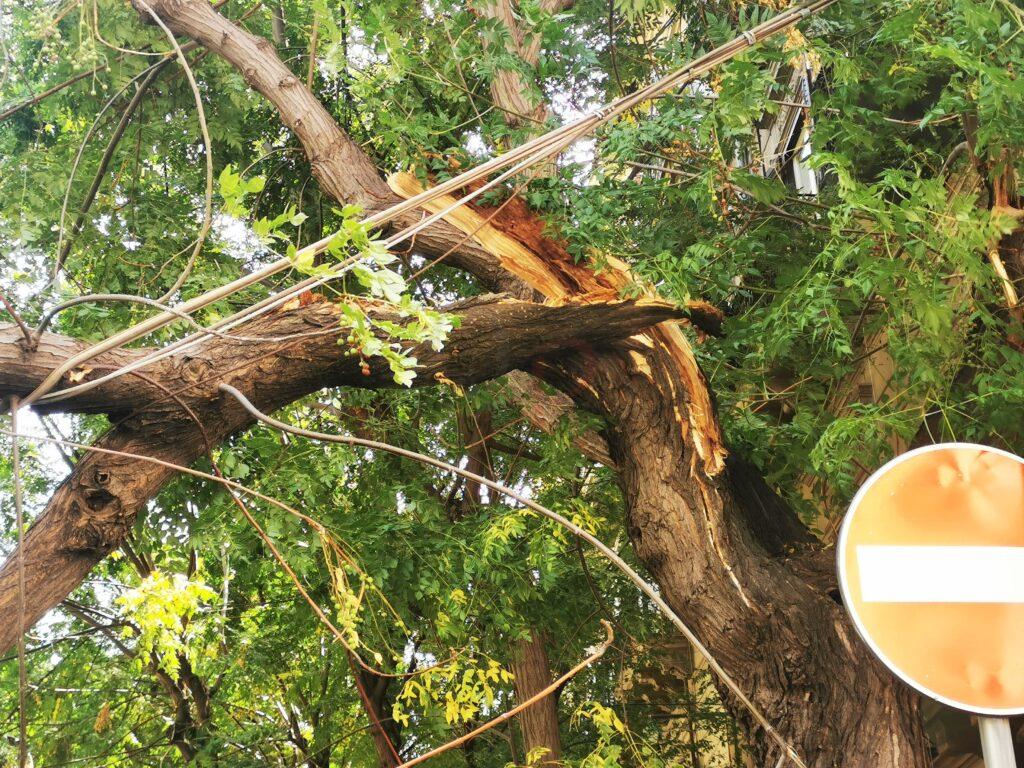 Il grosso tronco ha anche causato danni ai fili della rete elettrica e del telefono. Si attende l’intervento dei tecnici.