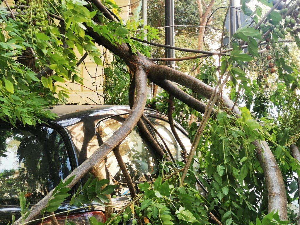 Sta provocando grossi disagi a Palermo il forte vento di scirocco che sta tirando in queste ore. In via XX settembre, all’incrocio con via Carducci, il ramo di un albero si è spezzato ed è finito su due auto posteggiate, invadendo anche parte della carreggiata. Fortunatamente al momento del crollo non transitavano da lì veicoli