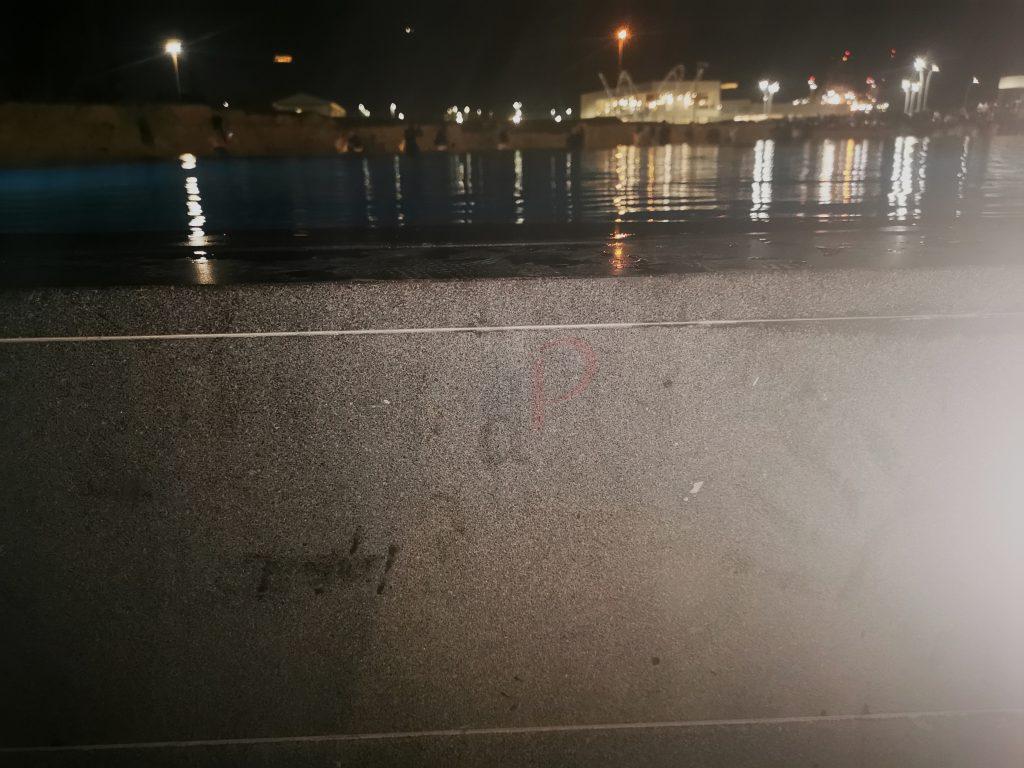 Purtroppo non è l’unico atto incivile di questi due giorni. A bordo laghetto, su uno dei marmi, era comparsa una scritta fatta con un pennarello nero. Nella foto la scritta è sbiadita perché alcuni giovani cittadini hanno provato a pulirla con tovagliolini di carta e acqua. Come inizio non c’è male.