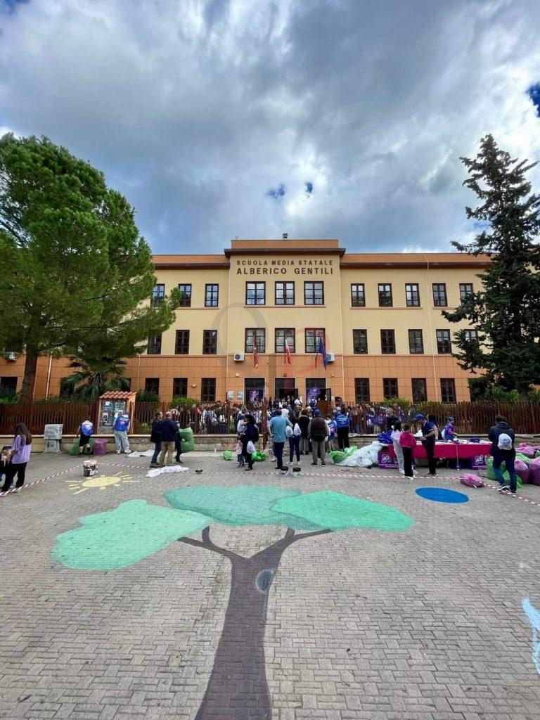 Studenti, docenti e genitori, insieme ai volontari di Retake hanno portato un po’ di bellezza nella piazzetta antistante l’Istituto Comprensivo Alberico Gentili: le studentesse e gli studenti delle classi medie, insieme alle bambine e ai bambini delle elementari – accompagnati dalle maestre – hanno disegnato a terra il ciclo della fotosintesi clorofilliana, ridipinto la cancellata e il muretto, piantato piccole piantine e fiori e costruito e posizionato una casetta per la condivisione dei libri.
