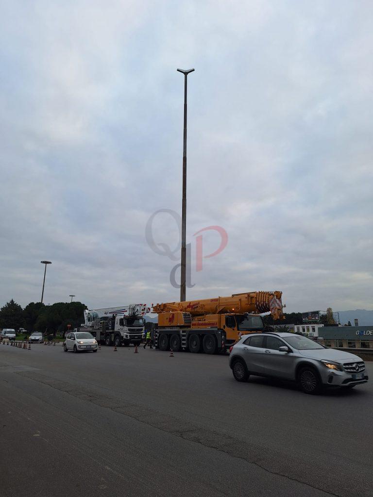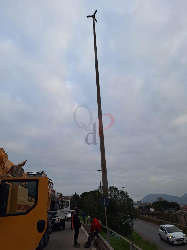 Dopo più di un anno dal crollo è in fase di ripristino la torre faro che si trova nei pressi della rotonda di via Belgio. I tecnici di una ditta privata stanno lavorando da ieri al corpo illuminante su cui sono montate una decina di fari. La torre dovrebbe tornare attiva martedì prossimo.