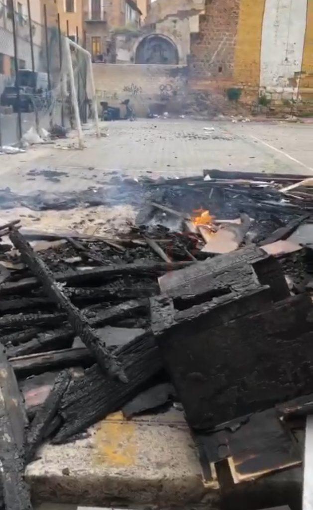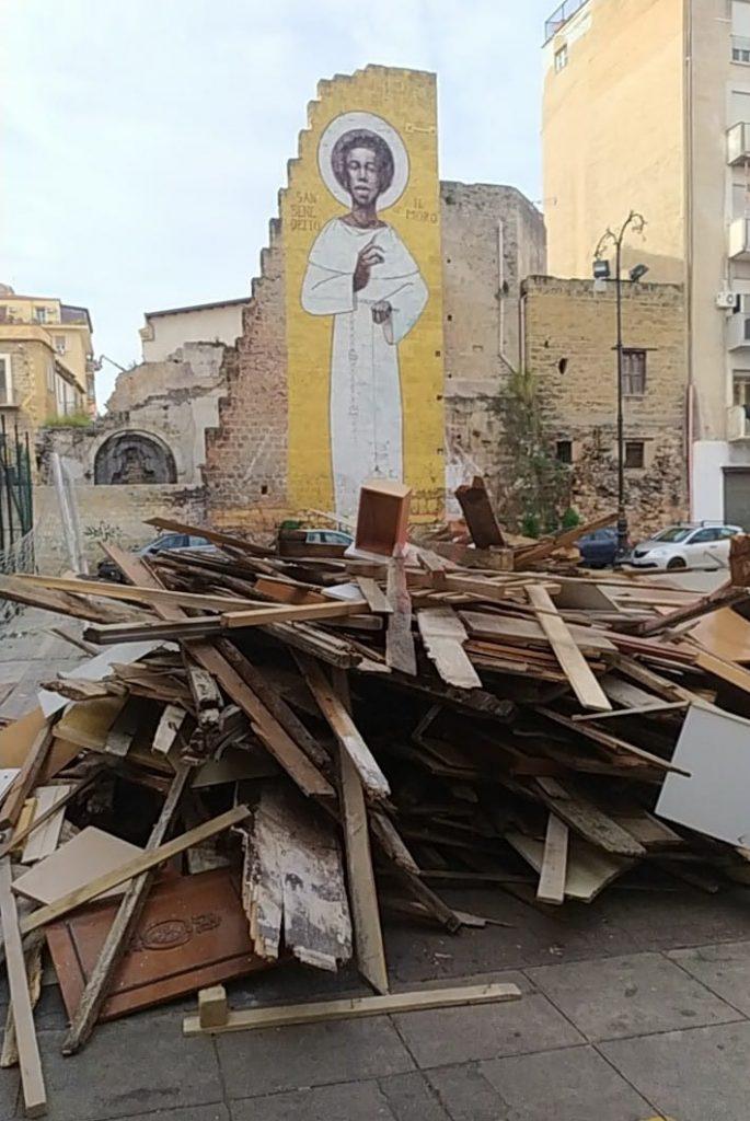 Cataste di legno a fuoco nel quartiere dell’Albergheria. Lì dove fino a poco tempo fa c’era il campetto di calcio dove tanti giovani giocavano a pallone ci sono adesso cumuli di rifiuti carbonizzati. A raccontare a QdP ció che è avvenuto, è un residente della zona che nei giorni scorsi aveva notato la presenza di un ingente quantitativo di legname nei pressi di un magazzino che si trova nella piazza in cui si affacciano il murale dedicato a San Benedetto il Moro, il pensionato universitario “Santi Romano” ed un’antica torre d’acqua.