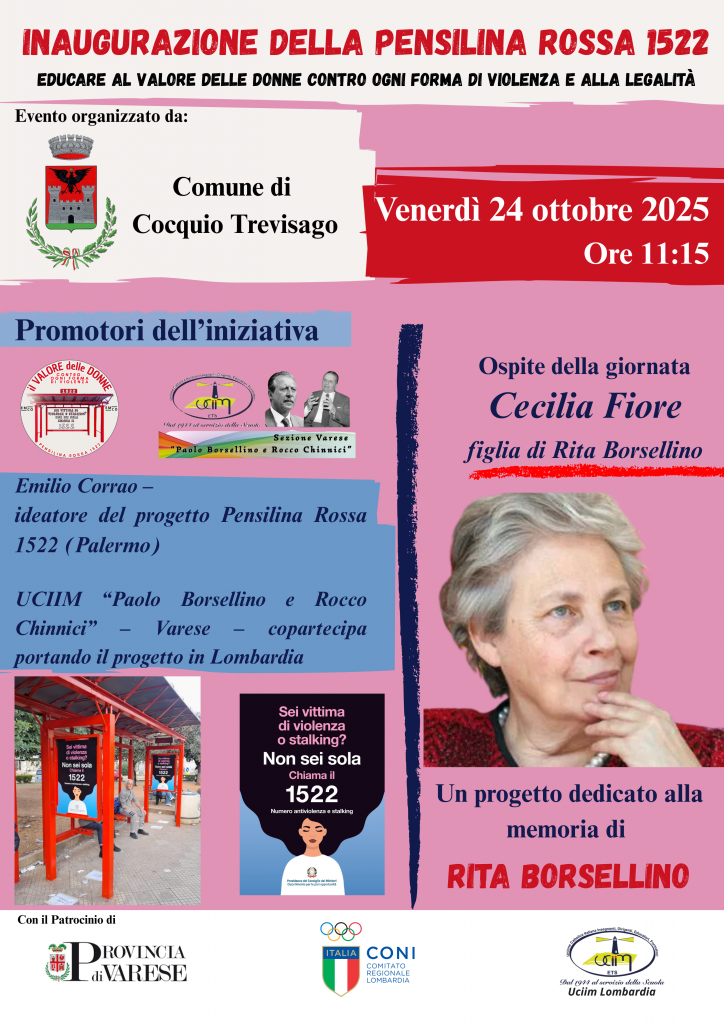 Per informazioni sul progetto e sulle prossime tappe del percorso “Pensilina Rossa”, è possibile contattare Filippo Tomasello, presidente UCIIM sezione “Paolo Borsellino e Rocco Chinnici” di Varese ([email protected] – 328 1233477).