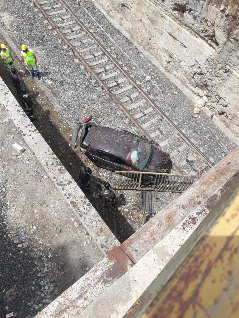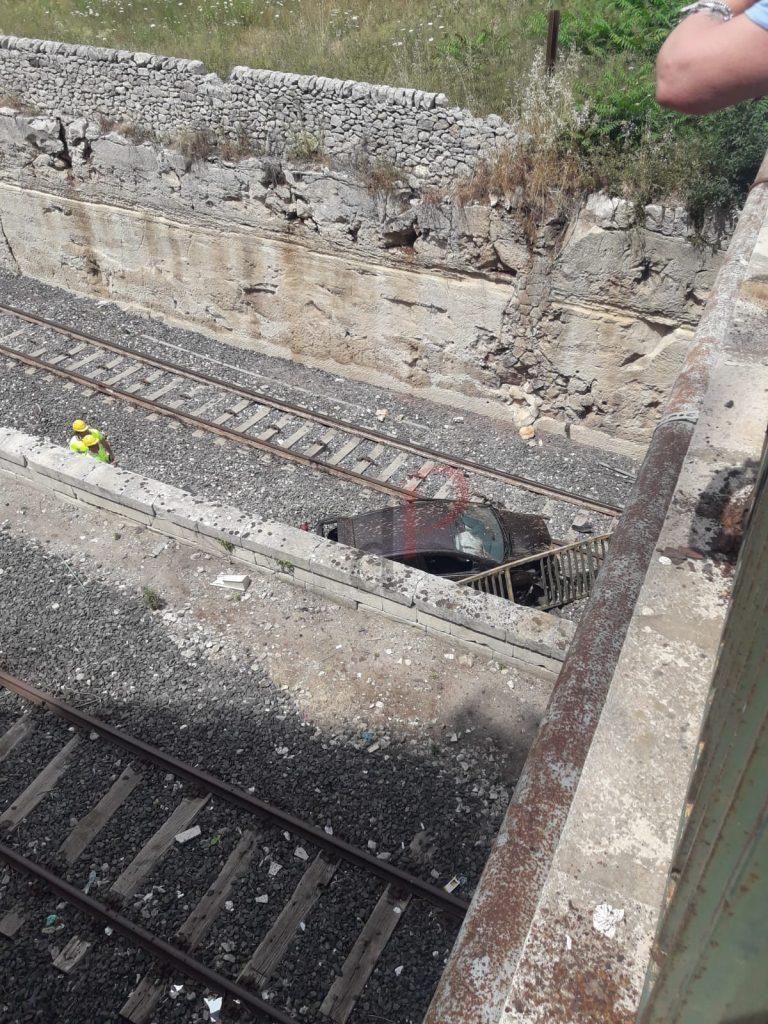 Sconvolgente incidente a Ragusa dove è stata sfiorata una tragedia. Il conducente di un’automobile ha perso il controllo del suo mezzo e, dopo avere sfondato la ringhiera di un ponte, è precipitato di sotto, finendo sui binari del treno.