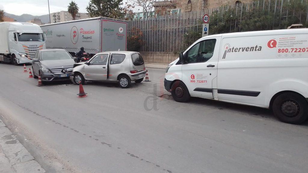 Un violento scontro tra due autovetture, una Fiat 600 e una Mercedes, è avvenuto nella tarda mattinata di oggi, 22 novembre, di fronte al carcere Ucciardone. Una delle due vetture viaggiava verso via Montepellegrino, l’altra invece in direzione via Crispi.