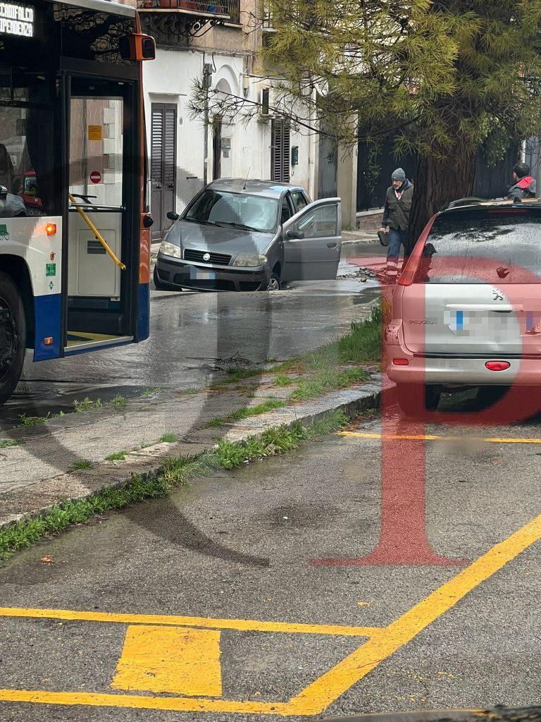 All’origine dell’episodio ci sarebbe la rottura di un tubo della rete idrica, che avrebbe progressivamente eroso il terreno sottostante fino a causare lo sprofondamento della strada. Le voragine si sono aperte improvvisamente, cogliendo di sorpresa un automobilista che passava da lì in quel momento con una Fiat Punto. L’auto è finita con una ruota all’interno della profonda buca rimanendo danneggiata. Fortunatamente l’incidente non ha causato feriti.