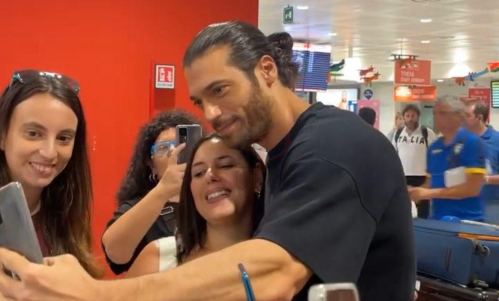 Ad attenderlo ieri sera diversi suoi fan, soprattutto donne, che hanno mostrato a Can Yaman uno striscione in suo onore e hanno chiesto selfie e autografi.