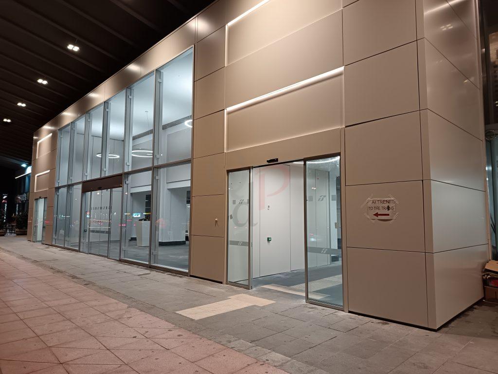Il nuovo ingresso della Stazione Notarbartolo ha tre porte a vetri automatizzate, due laterali e una centrale. Pannelli bianchi sono stati installati, su un telaio metallico, in tutta la facciata. Sfruttando l’ampio marciapiede, si è provveduto ad allargare l’entrata, operazione che ha permesso di guadagnare spazio all’interno, dove è stata realizzata un’ampia sala d’aspetto con panchine e piante.