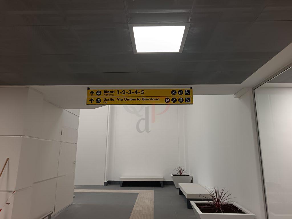 Gli operai hanno installato anche una nuova insegna luminosa con il nome della stazione che è stata posizionata, al posto della precedente, sul porticato in cemento.