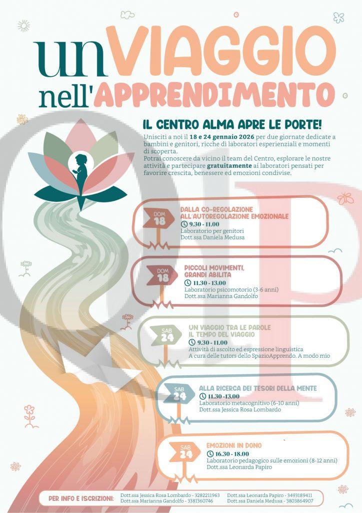 Il 18 e il 24 gennaio 2026 il Centro Alma di Marsala apre le porte alle famiglie. È in programma per le giornate di domenica 18 gennaio e sabato 24 gennaio 2026 l’evento gratuito “Un viaggio nell’apprendimento”, un’iniziativa del Centro Alma di Marsala, ma soprattutto un’occasione di crescita condivisa per bambini, adolescenti e adulti. Due giornate in cui le professioniste del centro propongono laboratori esperienziali e momenti di scoperta dedicati alla crescita, al benessere e alle emozioni condivise.